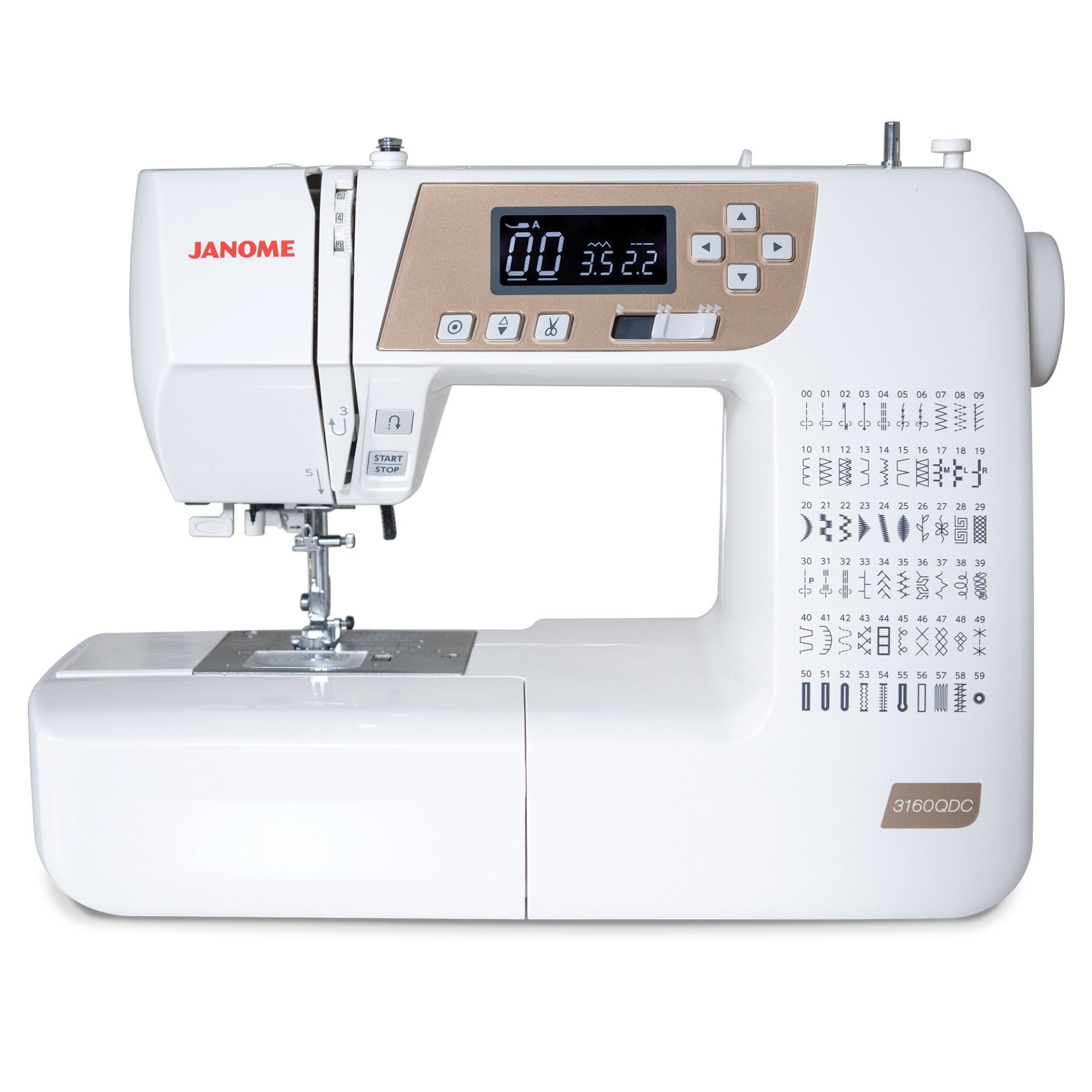 A full-featured machine made with a quilter's needs in mind, the 3160QDC-T will deliver all the benefits of a top-of-the-line model, and at an affordable price. You'll find 60 stitches including 6 one-step buttonholes. Janome's Exclusive Superior Plus Feed System offers specialized box feeding on top of Janome's SFS system, ensuring even, stable feeding with any fabric. And the time-saving features including memorized needle up/down, one hand needle threader and lock stitch button make sewing easy. Best of all, this full-size machine weighs only 12 pounds, so it is easy to take to classes and guild meetings!